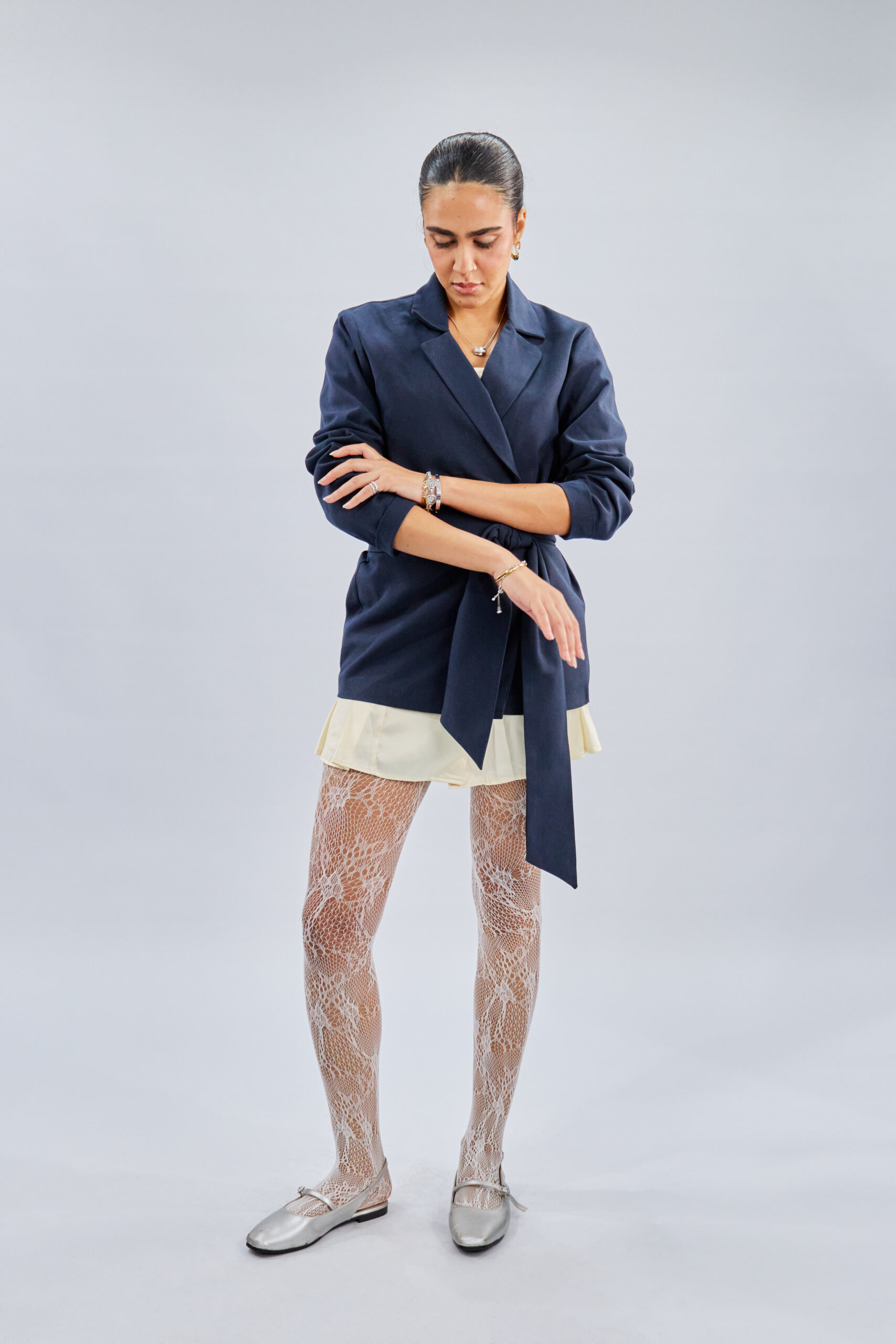 A structured statement blazer designed with a sleek waist-defining belt for a polished, modern silhouette. Crafted with clean lines and tailored precision, it elevates any look—from office chic to evening elegance.