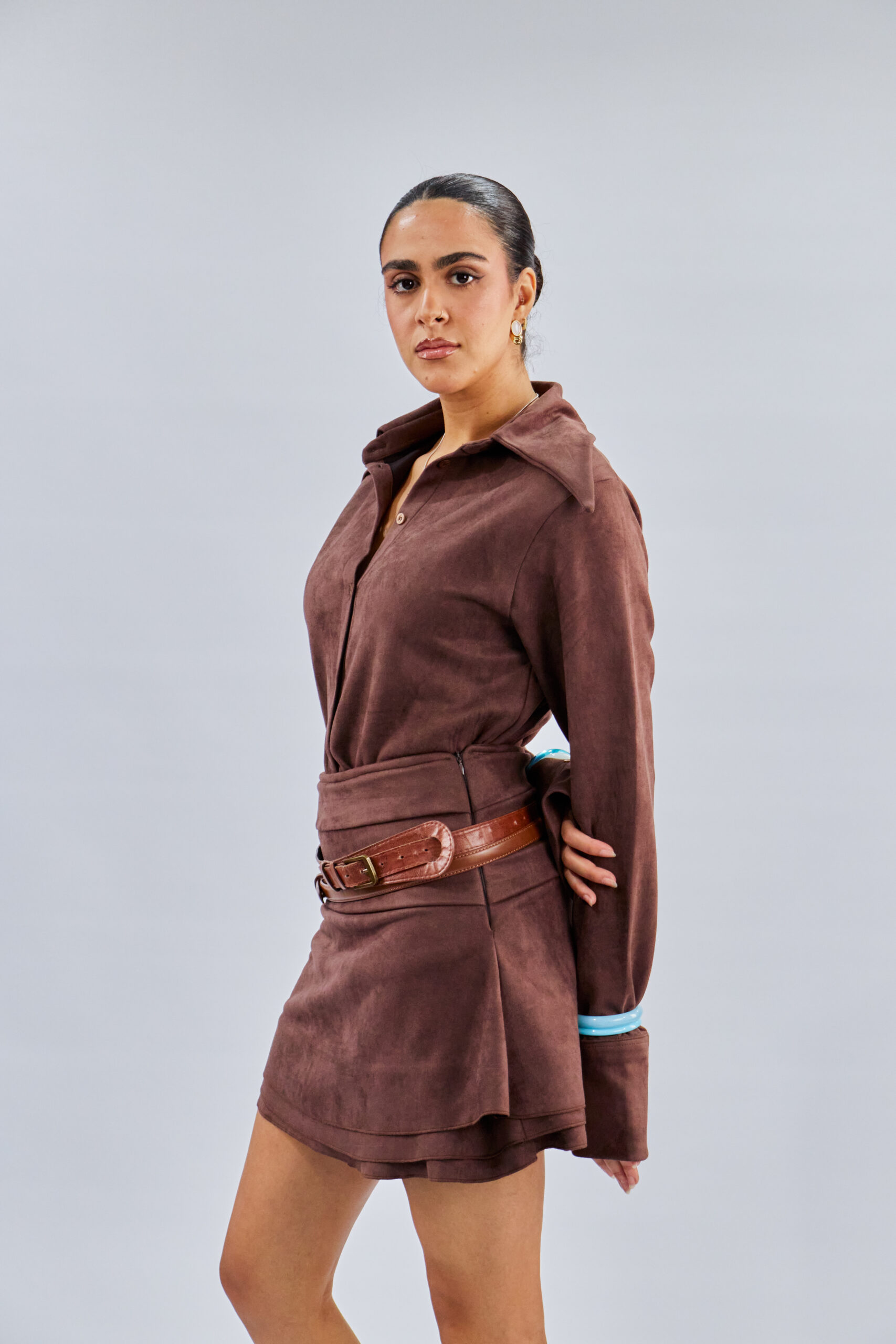 A coordinated suede set designed for the woman who loves minimalist luxury. Featuring a flattering silhouette and